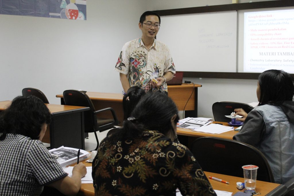 Dalam kegiatan ini guru-guru Kimia dari berbagai SMA di Kota Bandung diajak untuk menyadari pentingnya penerapan safety di laboratorium melalui rangkaian kegiatan di antaranya pengenalan berbagai aspek safety laboratorium, pembuatan risk assessment, melihat berbagai fasilitas safety dasar di lab, dan diakhiri dengan pelatihan penggunaan alat pemadam kebakaran (APAR) portabel. Semoga pelatihan yang diberikan dapat menumbuhkan kesadaran akan pentingnya safety lab, serta dapat diterapkan di laboratorium masing-masing SMA.