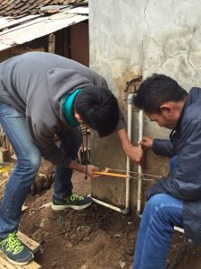 Mahasiswa Tim Bina Desa mengubah sambungan pipa