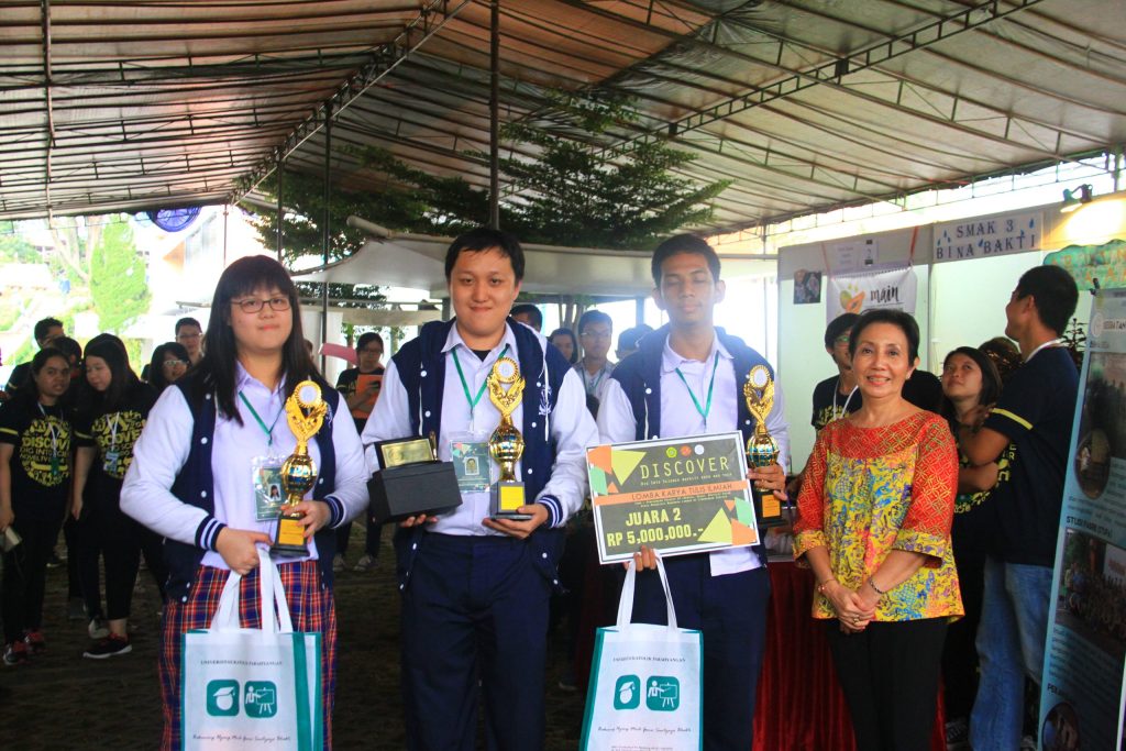 Sementara itu, juara favorit hasil voting pengunjung Pekan Ilmiah diraih oleh Hana Yemima, Vincencia Lourine, dan Reihan Krisnawan dari SMA Trinitas Bandung, dengan makalah “Kolaborasi Limbah Plastik dan Limbah Kubis menjadi Bahan Bakar Premium”.