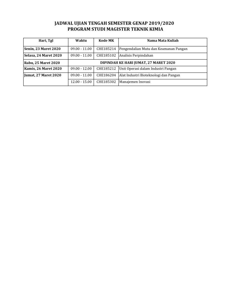 [PENGUMUMAN] Revisi Jadwal UTS Semester Genap 2019/2020
