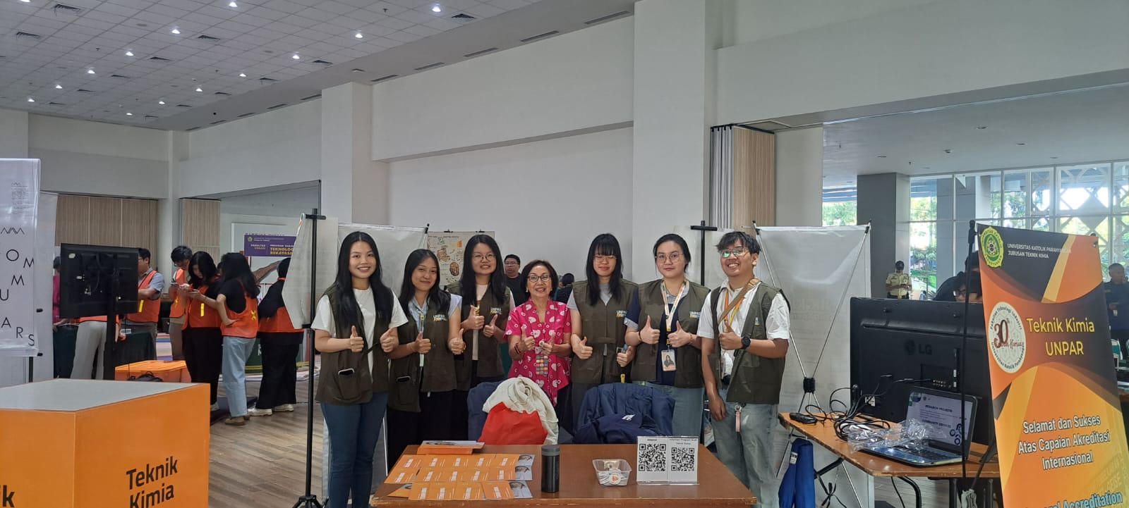 Salah satu booth yang ramai dikunjungi adalah milik Program Studi Teknik Kimia. Booth ini tidak hanya tampil menarik secara visual, namun juga penuh edukasi dan interaktivitas. Teknik Kimia UNPAR menunjukkan peran strategisnya dalam kehidupan sehari-hari melalui pajangan beragam produk komersial yang lekat dengan keseharian masyarakat, seperti susu, pasta gigi, minyak, oli, cat, plastik, kertas, sponge, dan lainnya, yang semuanya tak lepas dari sentuhan rekayasa kimia. Chemical Engineering touches everything in our life!